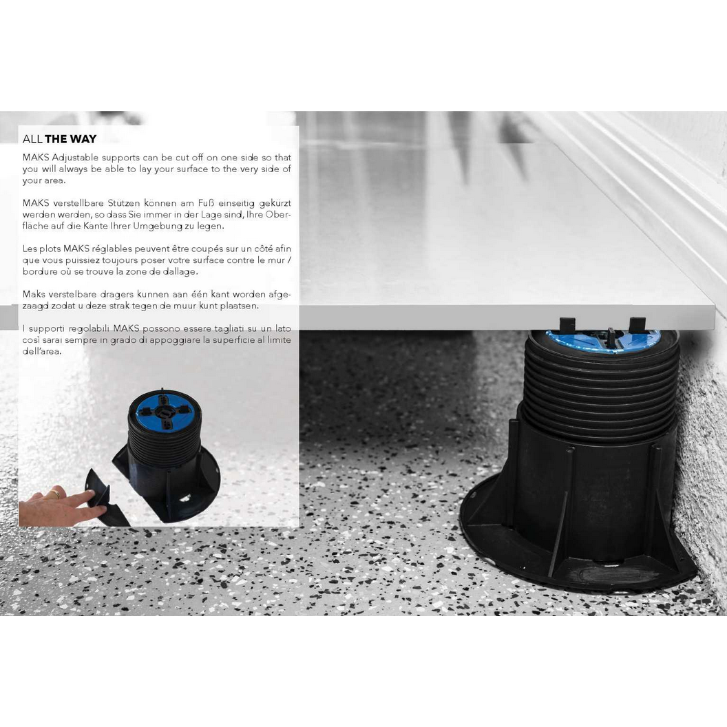 im Aussenbereich Die Höhen sind verstellbar von 25 mm bis 270 mm. Die Stelzlager für Stein und